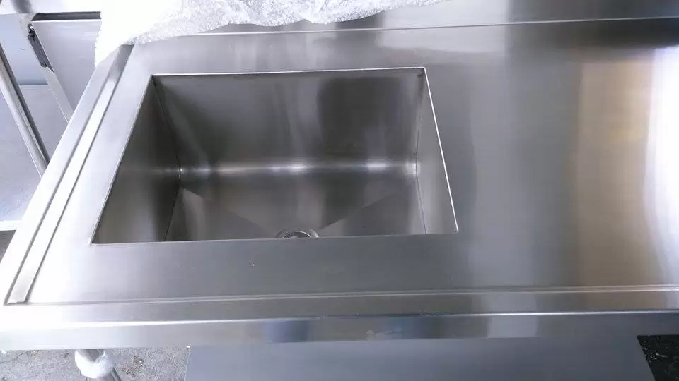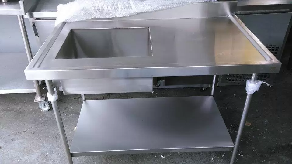 Tampo em Aço Inox 304 medida 1,20X0,70X0,85 Com Pé de Inox Com Prateleira