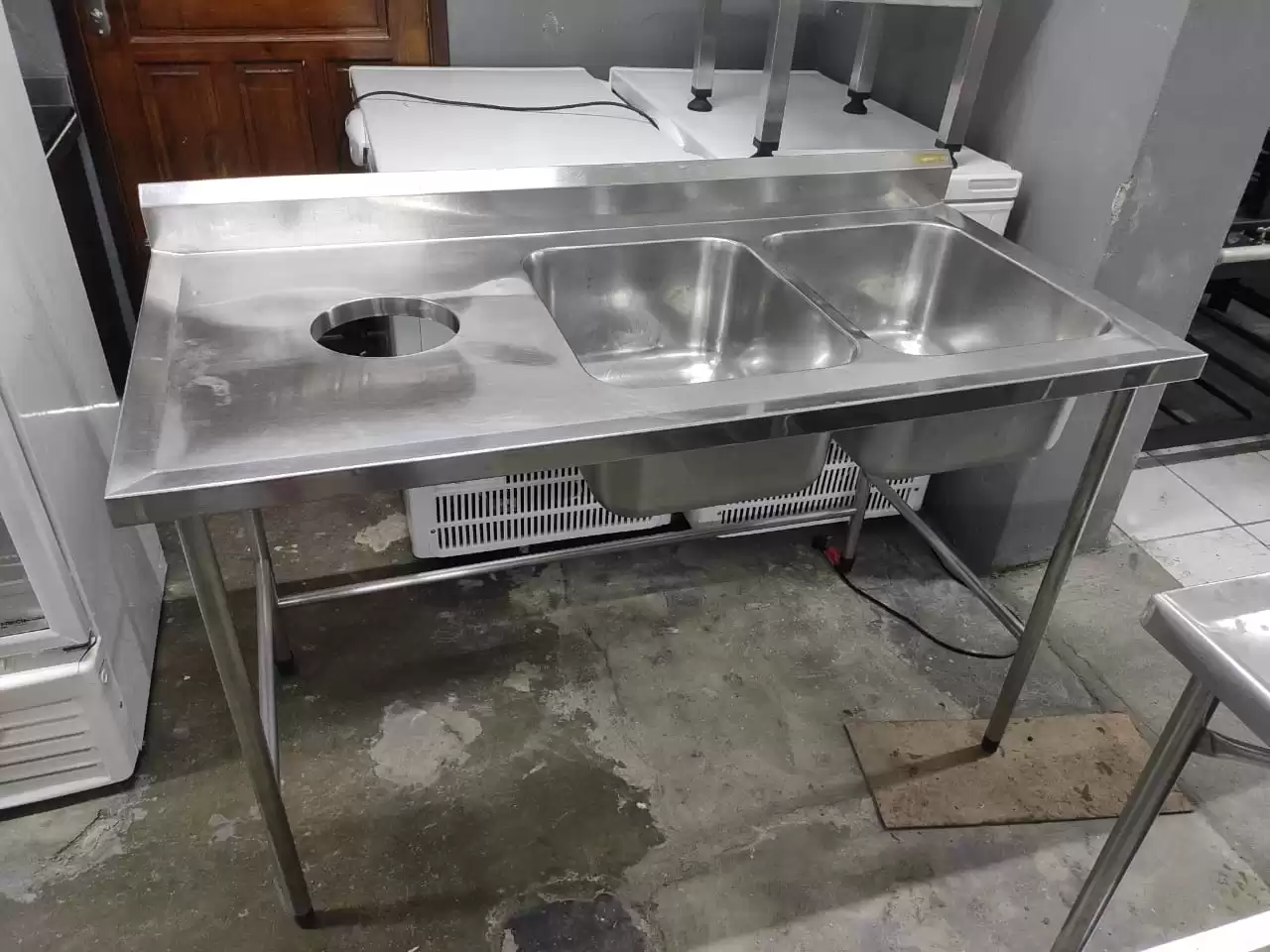 PIA INOX INDUSTRIAL MEDIDA 1,50X0,70X0,85 2 CUBAS E FURO PARA DETRITOS